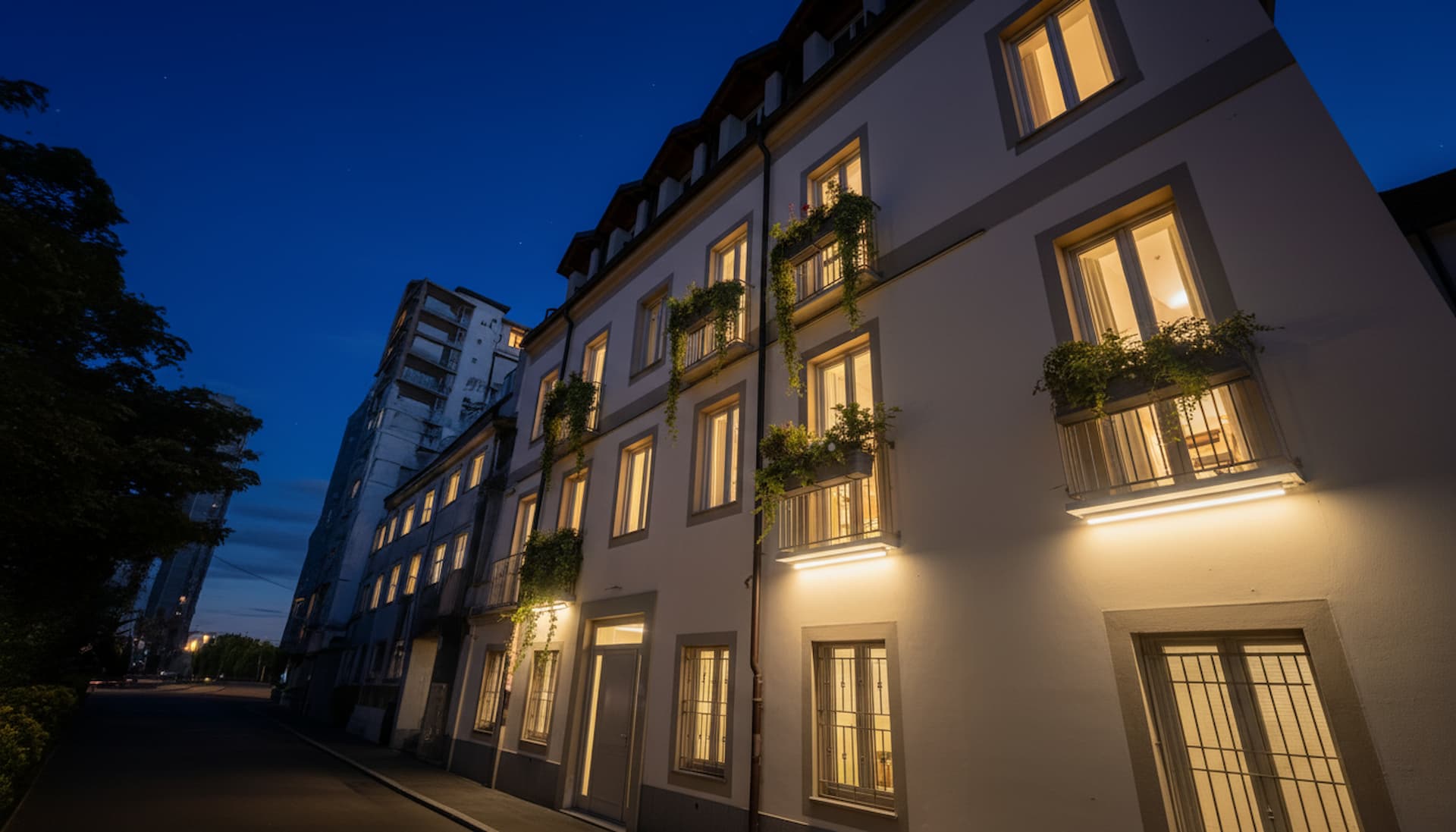 A magnificent three-story building, recently renovated, offering multiple interior solutions and communal areas.