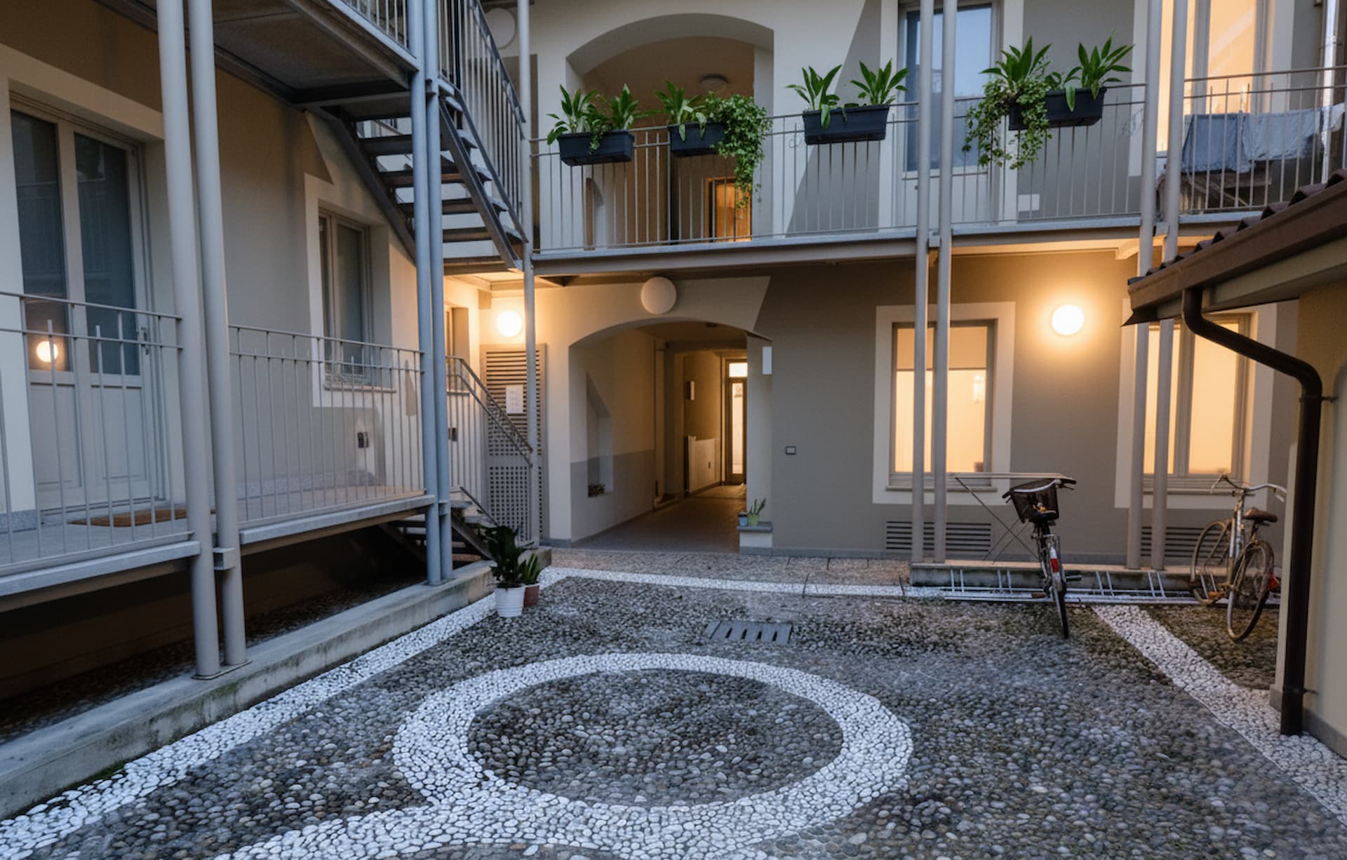 The apartments overlook an internal courtyard and come fully furnished and equipped, featuring kitchens complete with all appliances and renovated bathrooms. The interior style is understated and elegant.