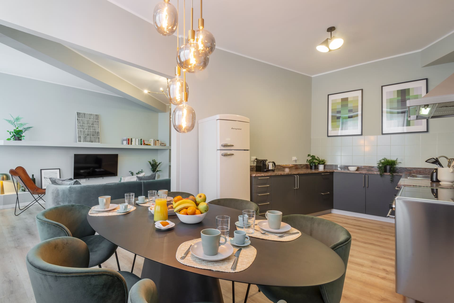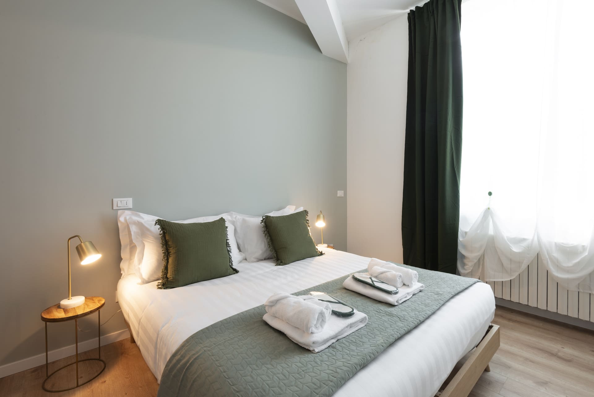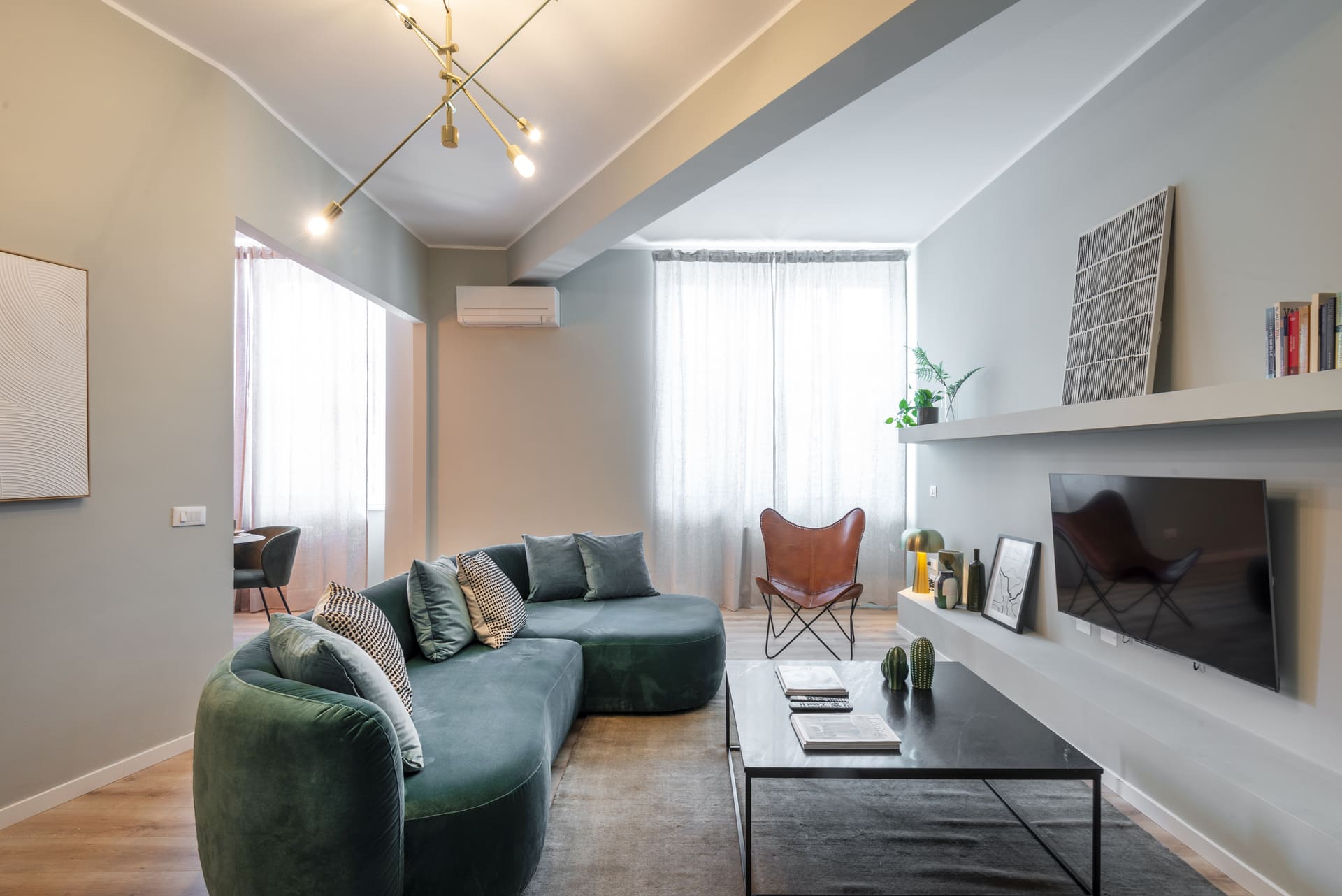 All apartments are located on the second floor, accessible via both a spacious stairwell and an elevator, with views facing West onto Via Bazzi and South. Every unit features a brand-new kitchen, fully equipped with new appliances. The bathrooms have also been renovated, and all furniture and accessories have been carefully selected to create a fresh, youthful, and functional atmosphere.