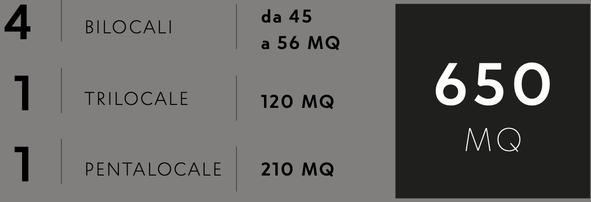 The property spans an entire second floor of approximately 700 sqm. It is currently composed of five one-bedroom apartments ranging from 55 to 65 sqm, one two-bedroom apartment of 120 sqm, and one four-bedroom apartment of 210 sqm. All units are registered for residential use but can easily be converted into offices, professional studios, showrooms, or other living spaces.
