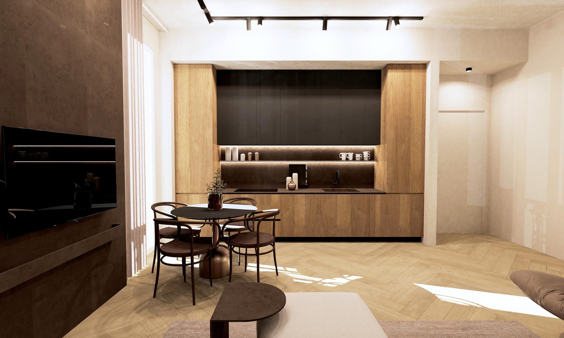 The sixth-floor apartments include private access to the rooftop terrace, and all residents have access to a large communal area featuring a gym and a spa.