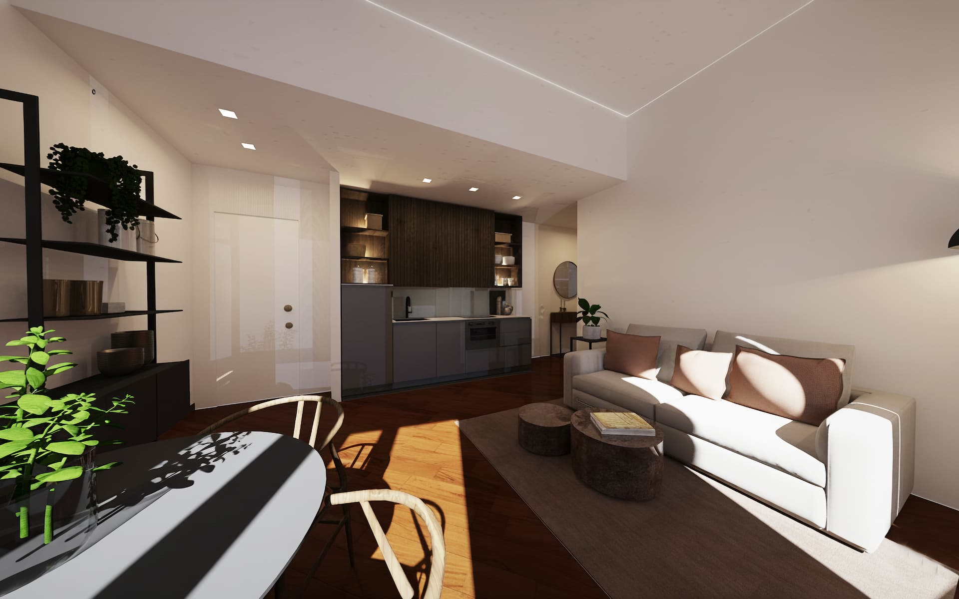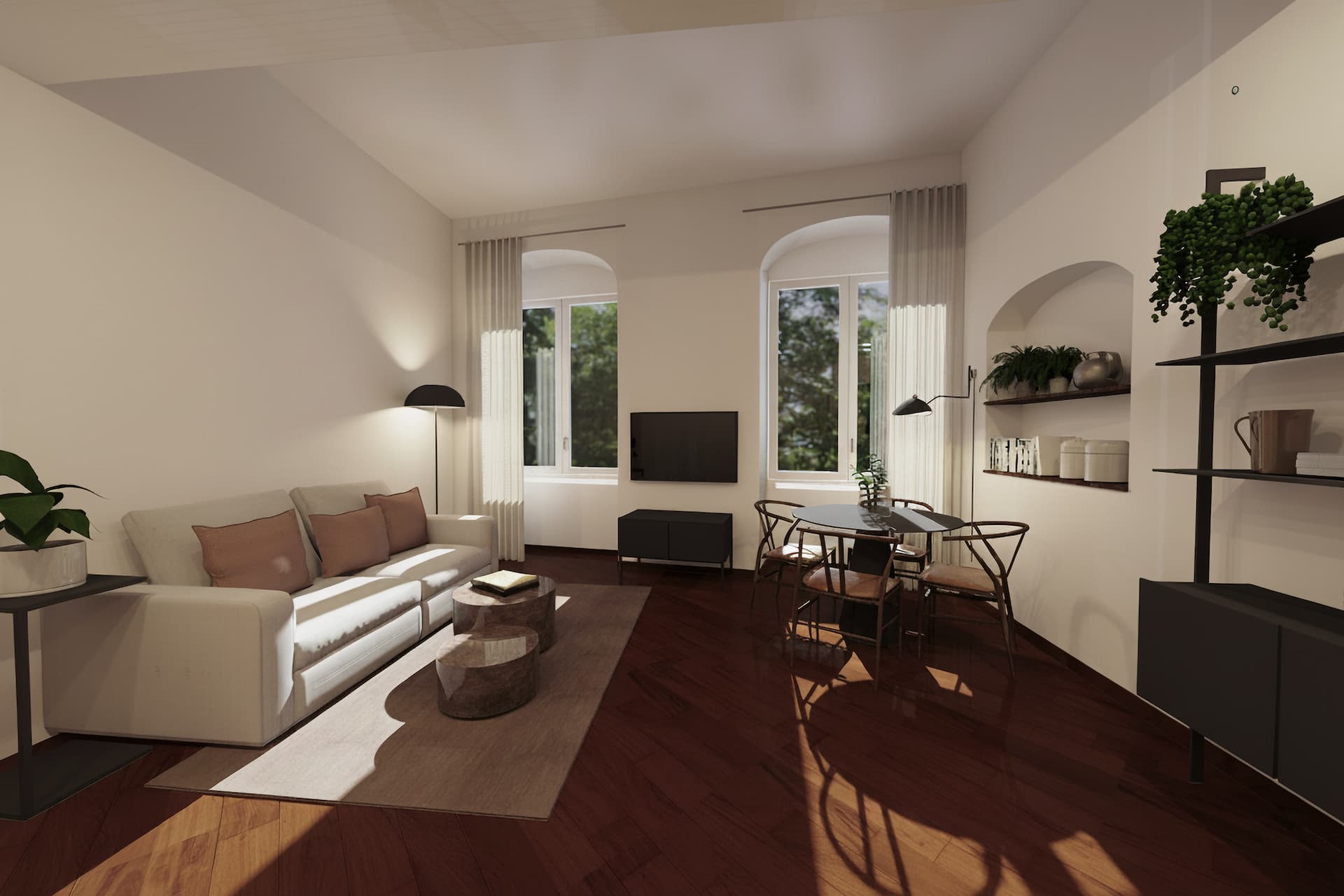 The building consists of five floors and offers a variety of residential solutions in different sizes. All apartments have been completely renovated, furnished, and equipped. The kitchens are custom-made, utilizing high-quality materials and finishes. Every unit features Doussié wood parquet flooring throughout both the bedrooms and the living areas. The building is characterized by large windows, and the apartments on the 4th and 5th floors enjoy expansive views of the harbor and the square below.