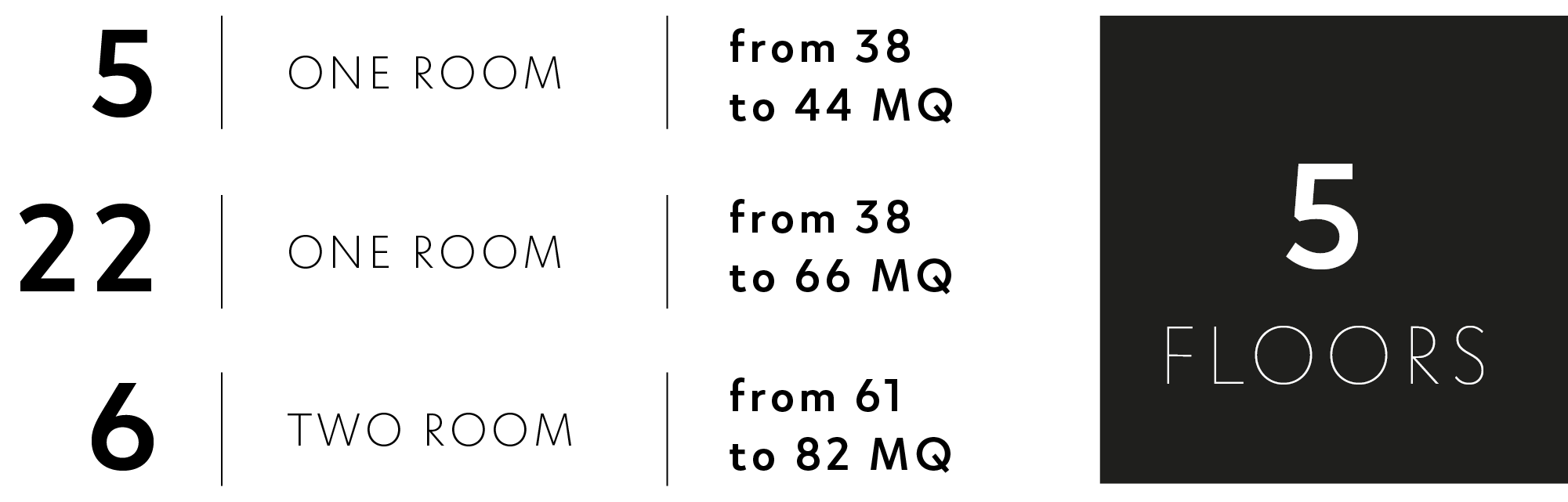 The building spans five floors, with a total surface area of approximately 2,000 sqm. Distributed around two stairwells, both equipped with elevators, are 33 apartments of various sizes and 11 storage cellars.