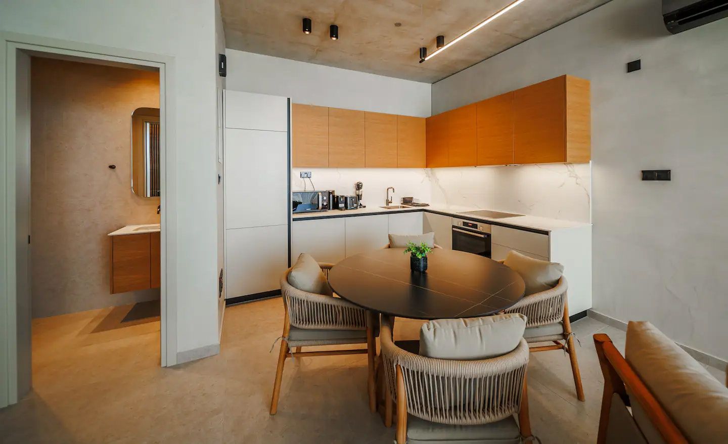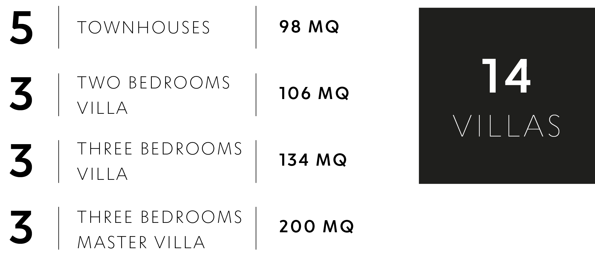There are four villa types available. Starting from 98 sqm up to 200 sqm of interior space, each villa features two or three bedrooms, a large open-plan living area with an integrated kitchen, and two bathrooms.
