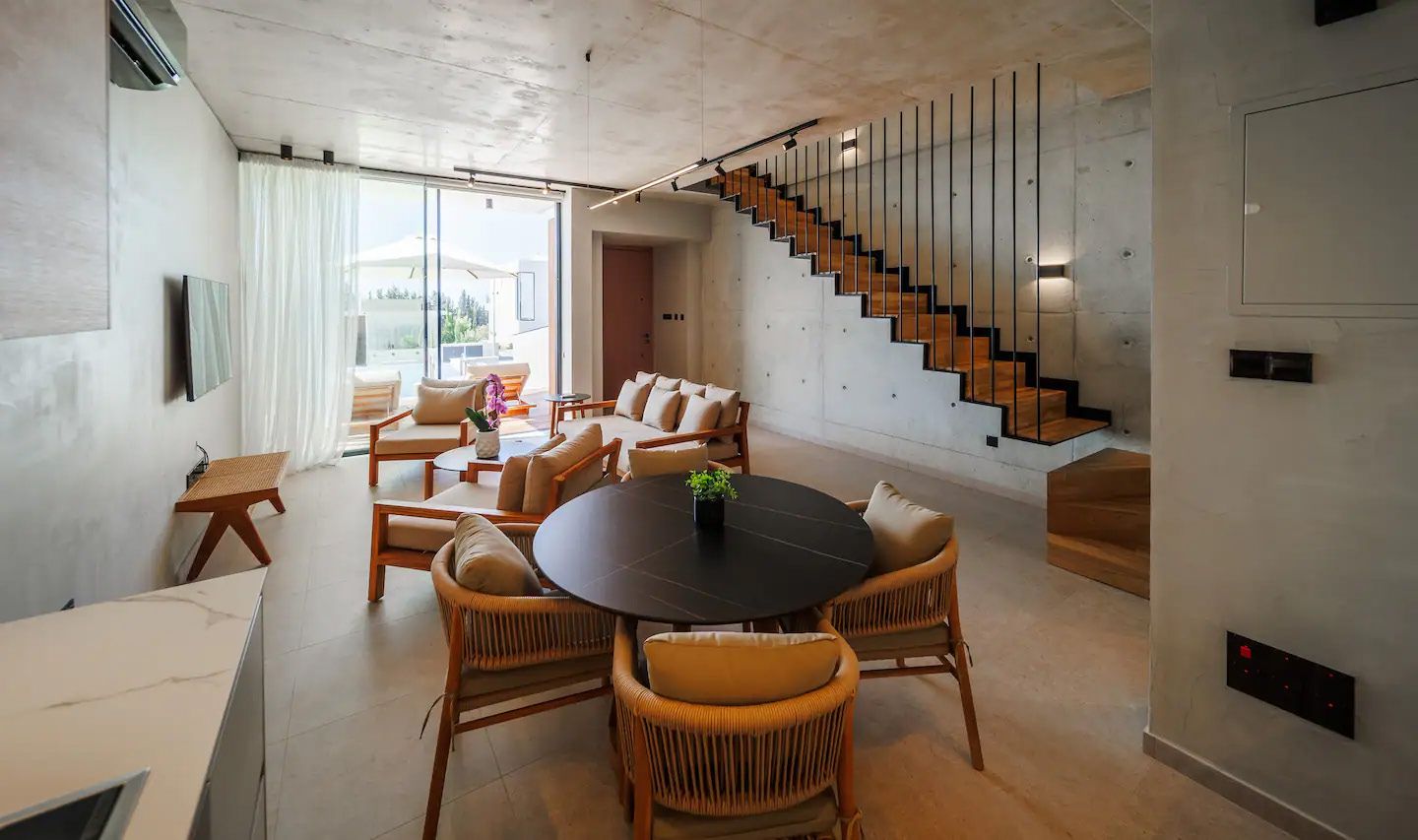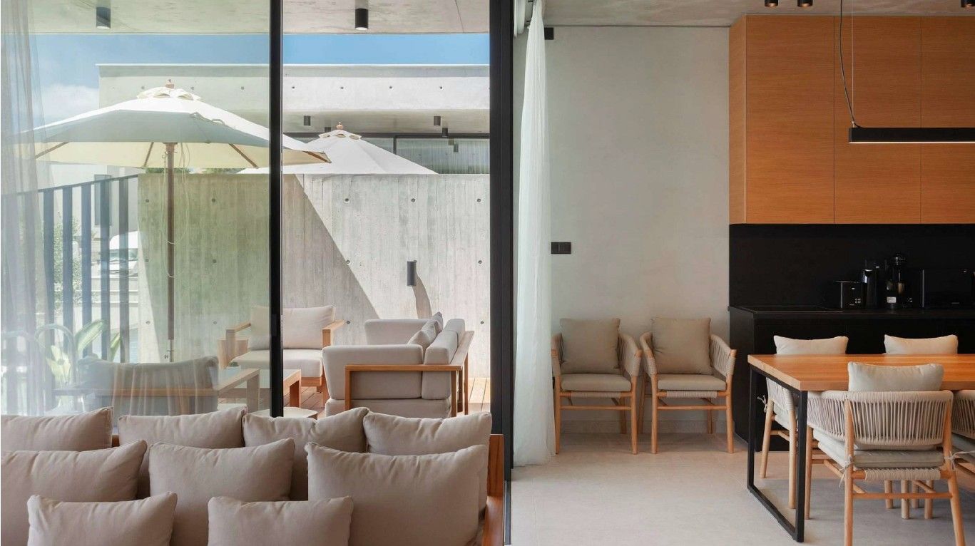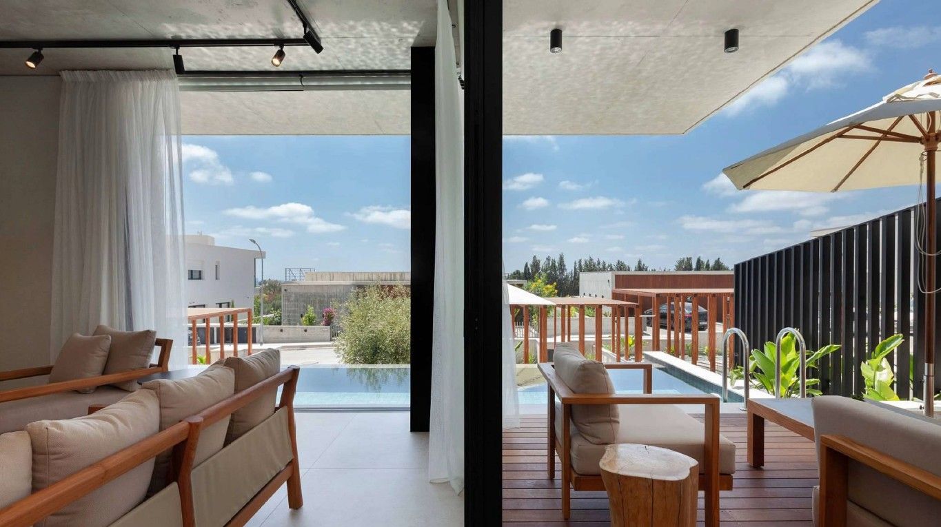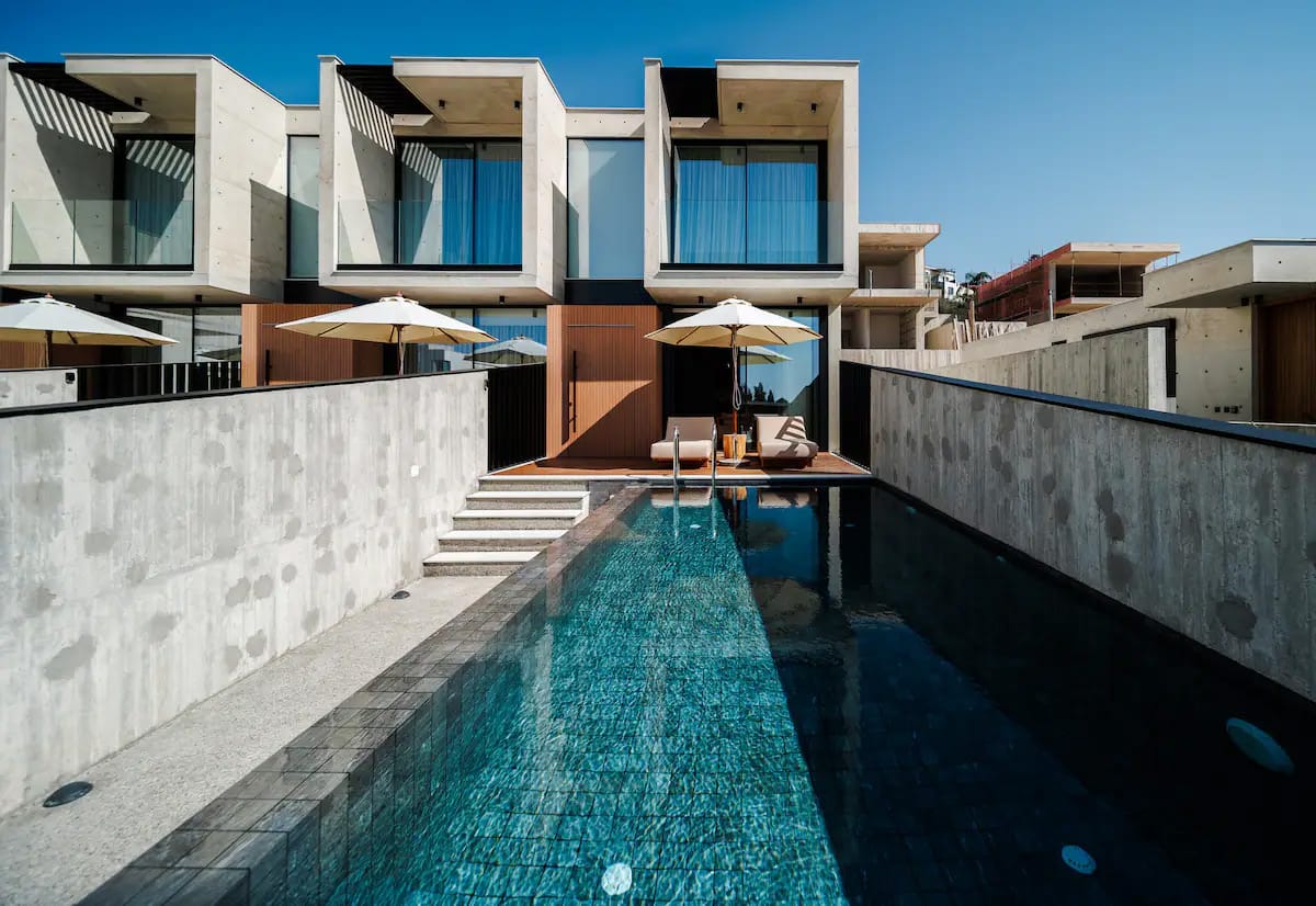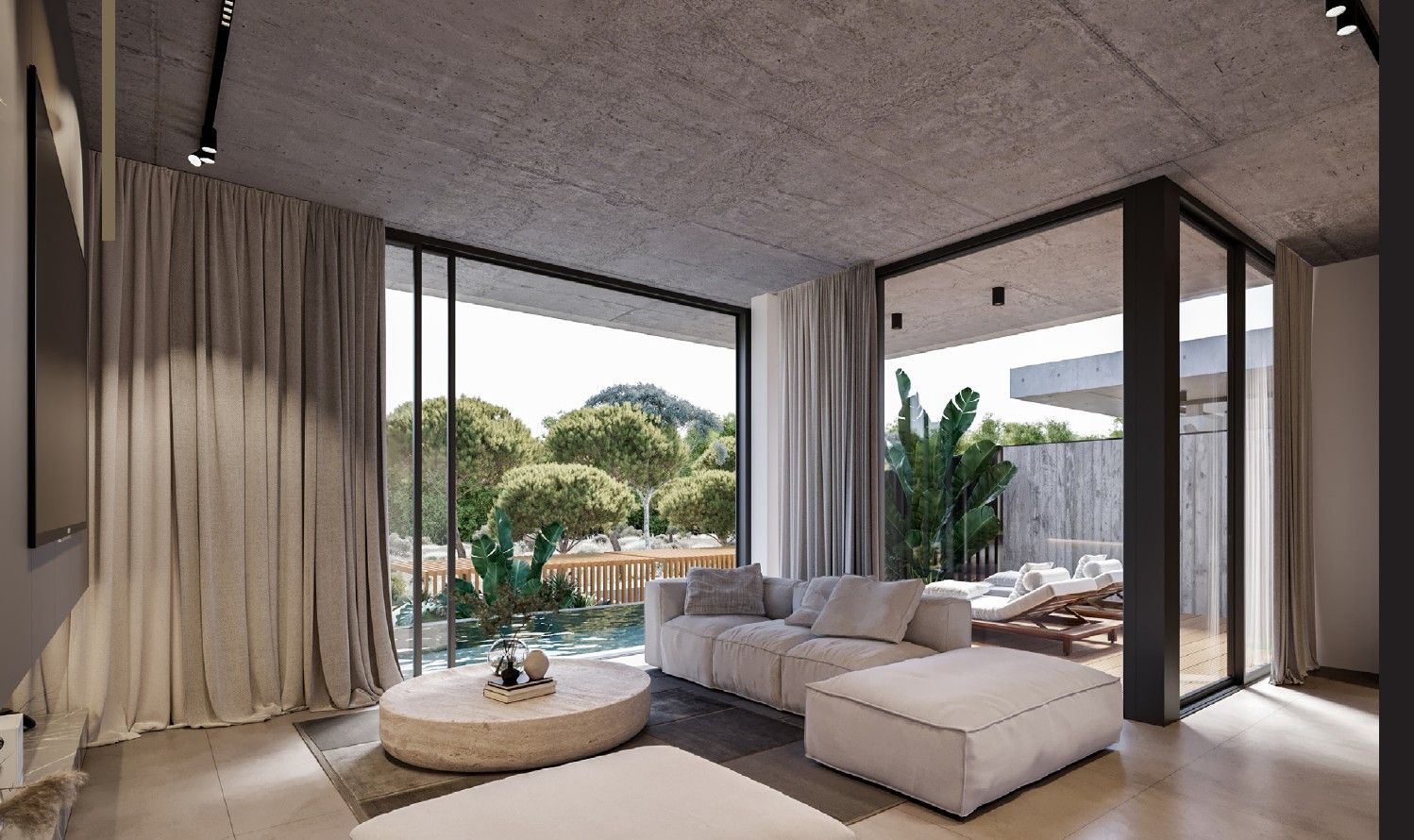 The properties boast refined, high-end finishes, including teak for the exterior, stone-effect porcelain stoneware for the interior, and exposed concrete details. As for the outdoor spaces, each villa includes a beautiful infinity pool, a sun deck, a garden area, and a private parking space.